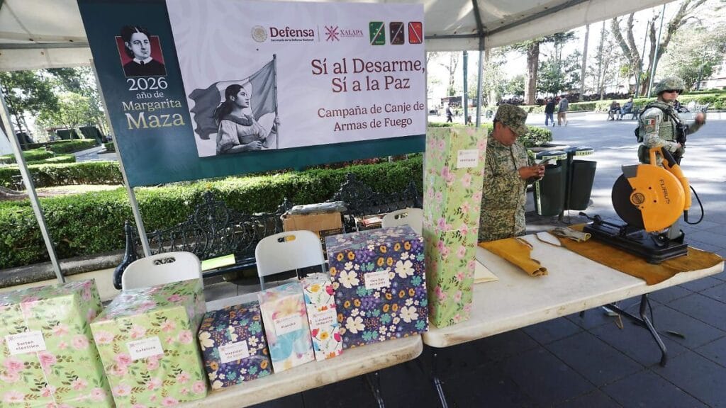 La campaña, titulada “Sí al desarme, sí a la paz”, se lleva a cabo del 2 al 6 de marzo en el parque Juárez, un lugar emblemático para los xalapeños. Este módulo está disponible de 9:00 a 14:00 horas y tiene como objetivo incentivar a la población a entregar armas de fuego y municiones.